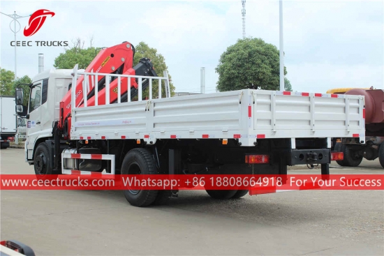 10-tons vrachtwagen met giekkraan, Dongfeng 4×2 chassis, FAST 8-versnellingsbak met handgeschakelde versnellingsbak, CUMMINS 190 pk dieselmotor, afmetingen van de laadbak optioneel, lakwerk en logo's op aanvraag.