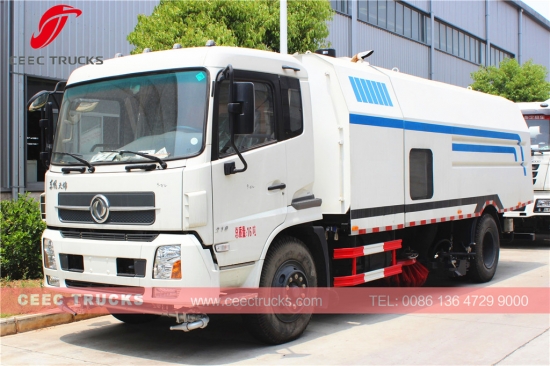 2018 pre-design Beste kwaliteit Dongfeng 12cbm veegmachine, 4200 mm wielbasis LHD & RHD chassis, Amerikaanse CUMMINS 190HP dieselmotor, handgeschakelde versnellingsbak met 6 versnellingen, uitgerust met een roestvrijstalen materiaaltank van 12cbm, met lakwerk en logo's afhankelijk van de wensen van de klant