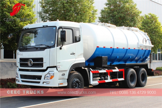 Fabrikant verkoopt Dongfeng 16000L beerputleger, die gebruikmaakt van een Amerikaanse CUMMINS 210HP dieselmotor, een handgeschakelde versnellingsbak met 8 versnellingen, een tankwagen van hoogwaardig staal met een inhoud tot 16 cbm, standaard WEILONG vacuümpomp, hydraulisch hefmechanisme voor het omhoog brengen van de tank, schilderwerk en logo's op aanvraag.