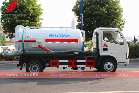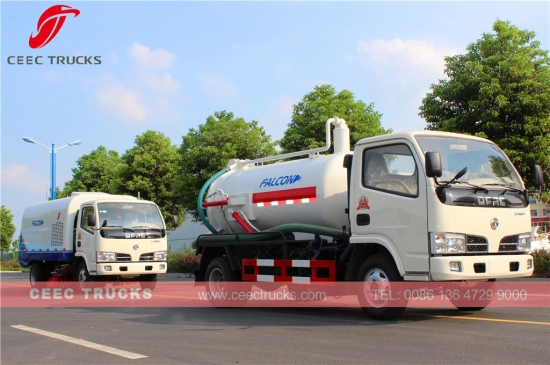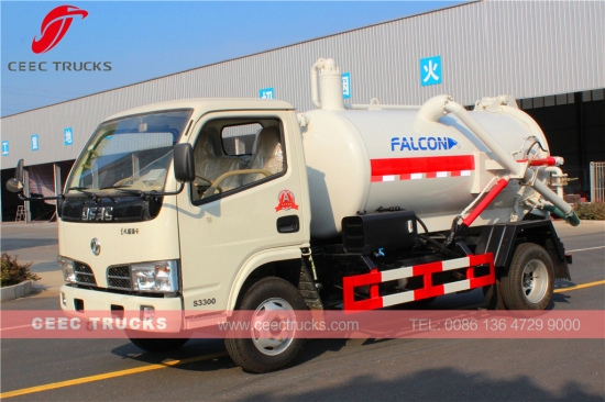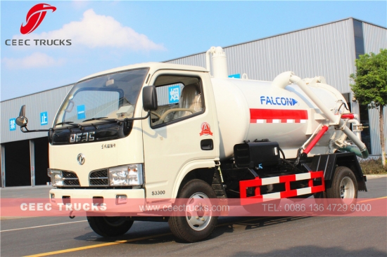 Dongfeng 4000L vacuüm-afvalwaterwagen met CHAOCHAI 95 pk-dieselmotor, handgeschakelde 5-versnellingsbak, tankwagen van hoogwaardig staal met een inhoud tot 4 cbm, standaard WEILONG-vacuümpomp, lakwerk en logo's op aanvraag.