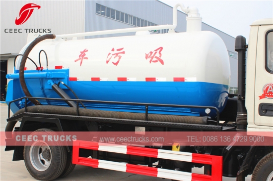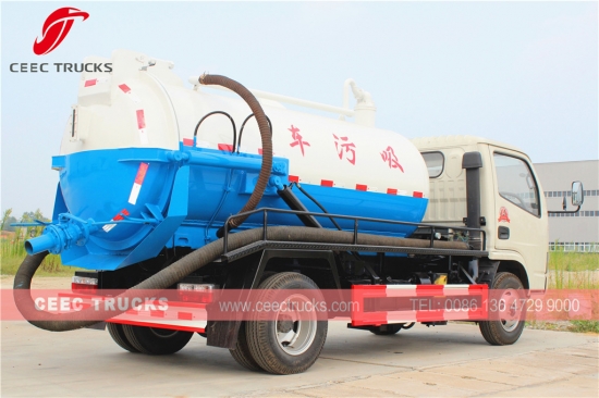 Dongfeng 4000L-legwagen voor beerputten tegen een lage prijs, uitgerust met een CHAOCHAI 95 pk-dieselmotor, een handgeschakelde 5-versnellingsbak, een tank van hoogwaardig staal met een inhoud tot 4 cbm, standaard een WEILONG-vacuümpomp, een hydraulisch hefwerktuig voor afvalafvoer, en schilderwerk en logo's op aanvraag.