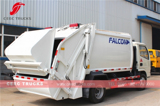 Dongfeng 5 cbm afvalperswagen met lage prijs, die gebruikmaakt van een topkwaliteit dieselmotor van 95 pk, een handgeschakelde versnellingsbak met 5 versnellingen, een afvalperswagen van hoogwaardig staal met een inhoud tot 6 cbm, Duitse PLC-besturing voor eenvoudige bediening, alle verfsoorten en logo's zijn op aanvraag.