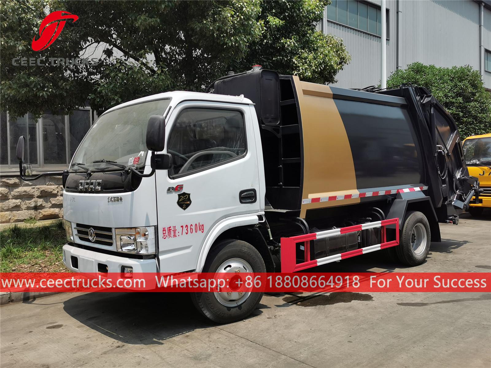 Dongfeng 5CBM afvalperswagen (ook wel genoemd Dongfeng afvalinzamelingswagen, achterlader vuilniswagen, hydraulisch geperst afval vrachtwagen Dongfeng, goedkope achterlader vuilniswagen, 6 wielengecomprimeerdvuilniswagen) is Ontworpen voor het dagelijks transport van afval in woonwijken zoals alle soorten steden, grote stations, havens en kades, luchthavens en dichtbevolkte gebieden zoals industriële en mijnbouwbedrijven en militaire eenheden.