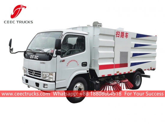 Dongfeng 5cbm straatveegwagen, Dongfeng 4x2 chassis, handgeschakelde 5-versnellingsbak, CHAOCHAI 102 pk dieselmotor, roestvrijstalen stofbak en schoonwatertank, 4-borstelsysteem, elektrische cabinebediening voor comfortabele bediening. Alle lak en logo's zijn aanwezig.afhankelijk van de behoefte.