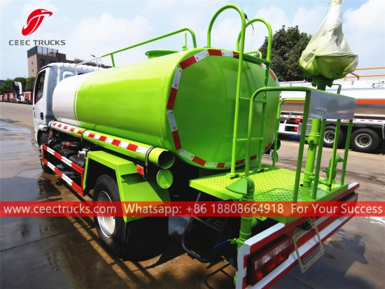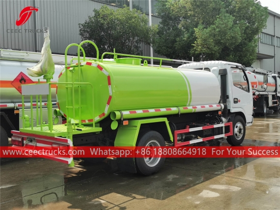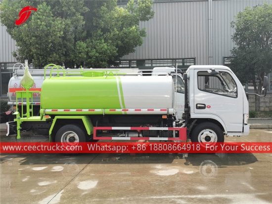 DONGFENG 5.000L watertankwagen, DONGFENG 4x2 chassis met stuur links, handgeschakelde 5-versnellingsbak, YUCHAI 115 pk dieselmotor, waterpomp van een bekend merk, met optionele sproeiers voor, midden en achter. Alle lakwerk en logo's zijn naar wens.