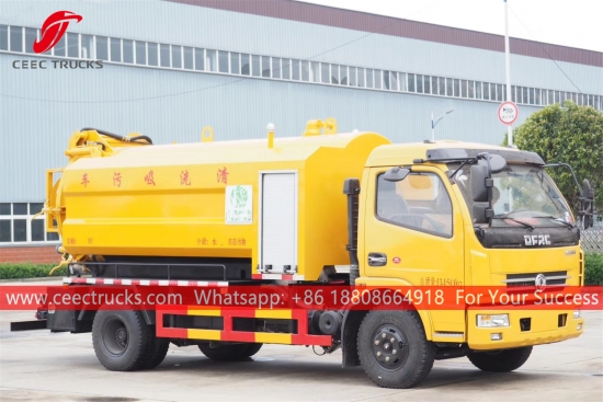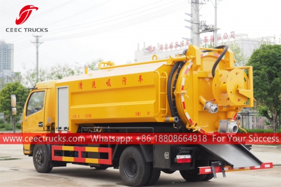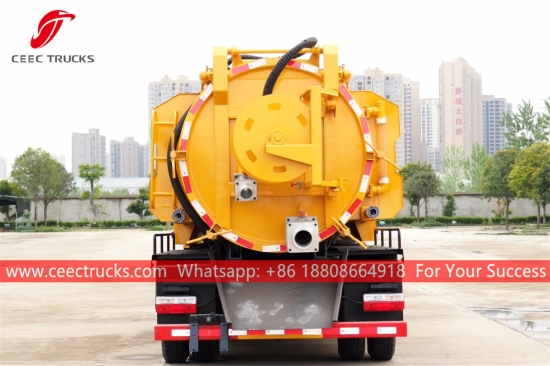 Gecombineerde jetting-zuigwagen Dongfeng (ook wel genoemdGecombineerde vacuümreinigingswagen, zuigstraalwagen, gecombineerde rioolreinigingswagen, gecombineerde spuitzuigwagen, spuit- en vacuümwagen, gecombineerde vacuümreinigingswagen voor rioolwater, gecombineerde spuit- en zuigwagen) is een voertuig dat is ontworpen om elke verstopping te verwijderen met behulp van spuitmonden die onder hoge druk door de rioolbuis bewegen, en om rioolafvoerleidingen te reinigen door middel van een krachtige vacuümzuiging om al het water plus modder uit het rioolgat te zuigenDeze vrachtwagen wordt veel gebruikt voor milieubescherming.