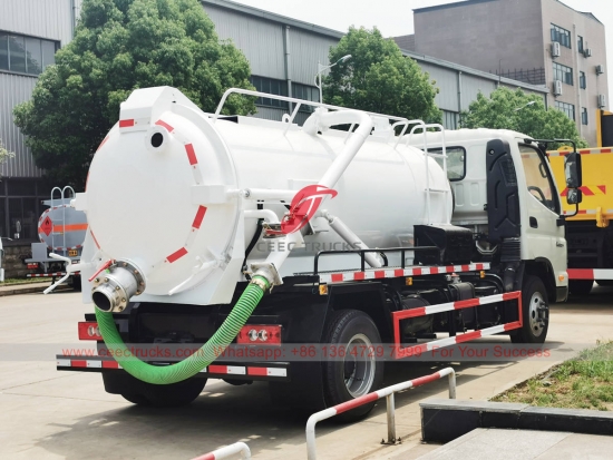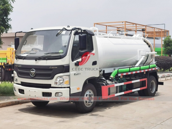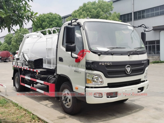FOTON 4.000 liter vacuümtankwagen, FOTON 4x2 chassis met het stuur aan de rechterkant, handgeschakelde zesversnellingsbak, CUMMINS 141 pk dieselmotor, sterke vacuümtankwagen, vacuümpomp van een bekend merk, alle lak en logo's zijn naar wens.