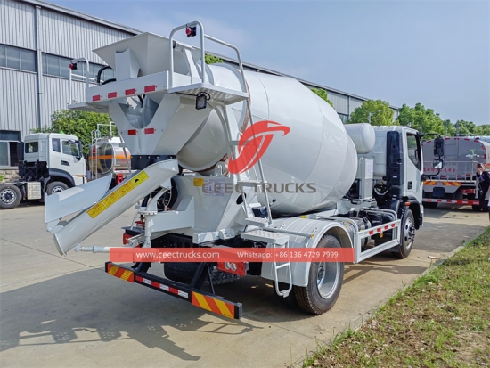 Aangepast 5cbm betonmixer, FOTON 4×2 LHD chassis, FOTON 140HP dieselmotor, handgeschakelde versnellingsbak met 6 versnellingen, wat betreft de belangrijkste onderdelen: motor, pomp, reductor, welke optioneel leverbaar zijn met merken als Eaton, PMP, Rexroth, Bonfiglioli, etc., lakwerk en logo's zijn op aanvraag leverbaar.