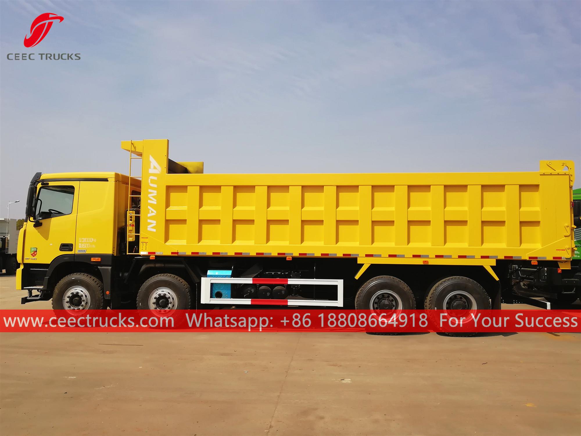 FOTON 8x4 dump tipper truck, FOTON 8x4 LHD chassis, FAST 12-shift manual gearbox, famous Chinese brand WEICHAI 430HP diesel engine, high strength steel tipper body, with HYVA or domestic hydraulic lifter optional. All painting and logos depend on requirement.