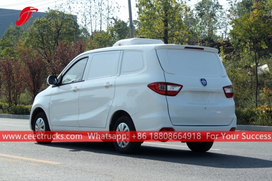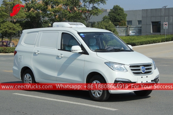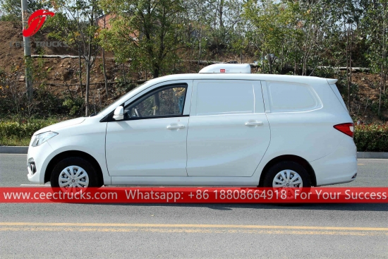FOTON Minikoelwagen, CEEC glasvezelversterkt kunststof, dikte isolatielaag meer dan 8 mm. Standaard America Carrier koelunits voor hoge prestaties. FOTON LHD chassis, 115 pk motor, handgeschakelde 5-versnellingsbak.