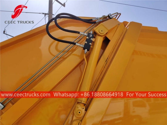 Fabrieksprijs 8.000 liter afvalperscarrosserie, die gebruikmaakt van een verdichtingscarrosserie van hoogwaardig staal, geïmporteerd PLC-model met besturing, hydraulisch cilinderbedieningsapparaat, Engelstalige bedieningskast voor eenvoudige bediening.