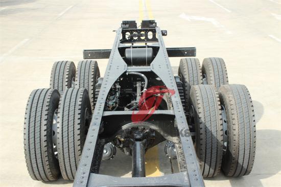 Het chassis zelf is een technisch meesterwerk, zorgvuldig ontworpen om de zware omstandigheden van zwaar gebruik te weerstaan. Het is gemaakt van zeer sterke materialen en vormt de basis voor het indrukwekkende laadvermogen en de trekcapaciteiten van de truck. De buitenafmetingen van het chassis bedragen 11285*2540*2985 mm en het 4-assige ontwerp benadrukt de stabiliteit en het draagvermogen, wat het tot een gigant in de transportwereld maakt.