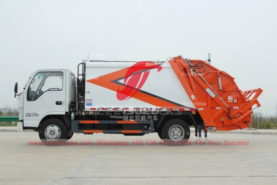ISUZU 6CBM afvalperswagen (ook wel genoemd ISUZU 100P vuilniswagen, ISUZU achterlader, ISUZU 4×2 vuilniswagen, vuilniswagen met achterlader, ISUZU vuilniswagen,afvalpersvrachtwagenfabrikant) is Ontworpen voor het dagelijks transport van afval in woonwijken zoals alle soorten steden, grote stations, havens en kades, luchthavens en dichtbevolkte gebieden zoals industriële en mijnbouwbedrijven en militaire eenheden.