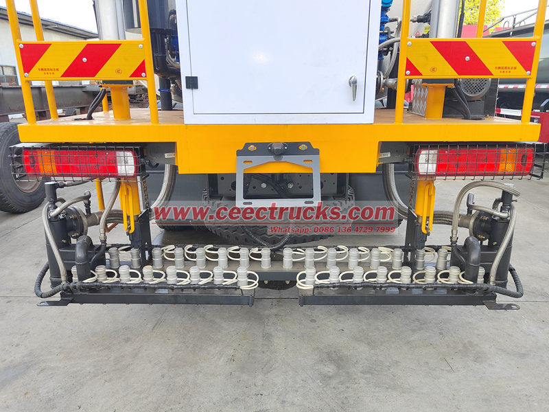 De achterzijde van het voertuig is uitgerust met een uitschuifbare spuitboom (in lengte verstelbaar van 2 tot 6 meter), voorzien van een hogedrukcentrifugaalpomp en een waaiervormige spuitdop. De spuitbreedte en debiet kunnen traploos worden ingesteld (0,3 tot 3 l/m²) via de boordcomputer om te voldoen aan de eisen van verschillende processen, zoals penetratiecoating, hechtcoating en sealcoating.