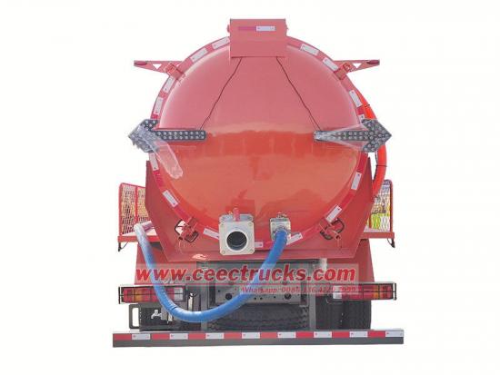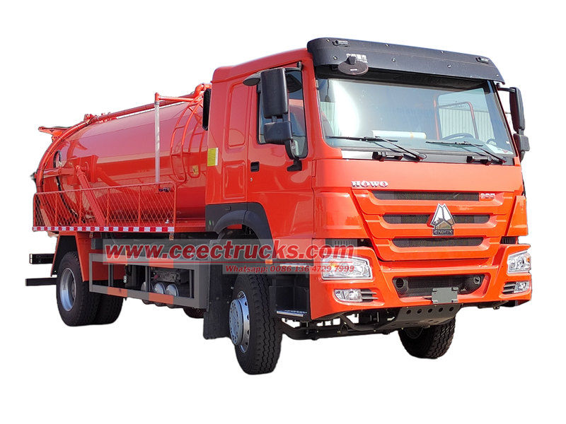 De Howo 10 cbm rioolreinigingstankwagen is gebaseerd op een Howo 4x2 chassis, wielbasis 4600, uitgerust met een 300 pk WP10.300E22 dieselmotor en een HW13710 versnellingsbak, ZF8198 stuurinrichting, Euro 3 dieselmotor met een emissiewaarde van 9.726L, 295/80R22.5 banden met in totaal 7 stuks, en is krachtig en eenvoudig te bedienen. De tank is gemaakt van hoogwaardig koolstofstaal en uitgerust met een krachtige vacuümpomp. Hij is zelfaanzuigend, zelflozend en zelflossend. De tank heeft een sterke zuigkracht en een hoog rendement, waardoor de tank in één handeling snel kan worden gevuld en efficiënt kan worden geleegd.