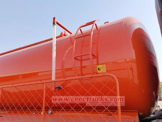 De tank is zorgvuldig vervaardigd uit hoogwaardig staal en heeft een speciale anticorrosiebehandeling ondergaan, wat zorgt voor een uitstekende corrosiebestendigheid. Hij is bestand tegen erosie door diverse verontreinigingen gedurende een lange periode, waardoor de levensduur van het voertuig wordt verlengd. De rationele structuur van de tank en het gladde interieur zonder dode hoeken vergemakkelijken niet alleen de afvoer en reiniging van verontreinigingen, maar verminderen ook de hoeveelheid restverontreiniging en voorkomen secundaire verontreiniging. Bovendien is de tank uitgerust met diverse veiligheidsvoorzieningen, waaronder een overloopventiel en een veiligheidsventiel. Deze worden automatisch geactiveerd wanneer de druk of het vloeistofniveau een ingestelde waarde bereikt, wat een veilige werking garandeert.