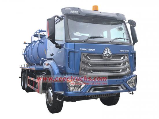 De Howo 15 cbm vacuüm beerput-leger is aangepast op basis van een HOWO NX Cabin 6x4 chassis, met een wielbasis van 4325+1350mm, 315/80R22.5 banden met in totaal 11 stuks, airconditioning, USB, richtingsassistentie. Uitgerust met een 400 pk WP12.400E32 dieselmotor, HW19710 transmissie, 10 versnellingen vooruit, 2 achteruit, ZF8118 stuurinrichting, die krachtig en eenvoudig te bedienen is. Het voertuig is uitgerust met een 15 cbm vacuümtank, die kan voldoen aan verschillende baggerbehoeften, zoals stedelijke riolering en industriële pijpleidingen.