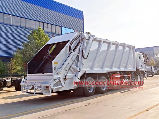 Compacte technologie: Tweerichtingscompressietechnologie. Tijdens het vullen en verdichten werken de duwer en de schraper samen om het afval te comprimeren; tijdens het lossen beweegt de duwer naar voren om het afval in zijn geheel naar buiten te duwen, wat zorgt voor krachtige compressie en grondig lossen.