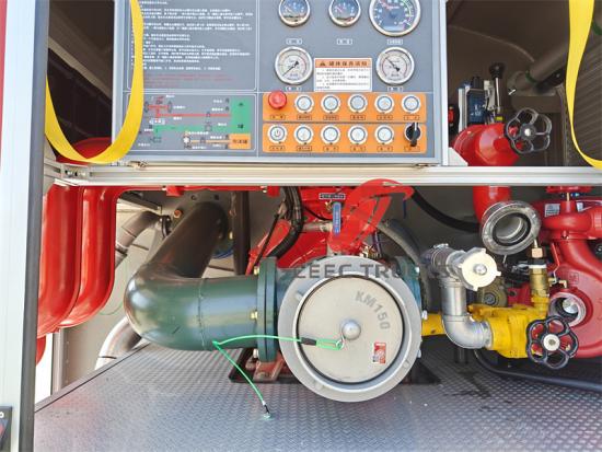 3.Prestaties van het pompsysteem en de brandmonitor: Het hoogwaardige pompsysteem vormt het hart van de brandweerwagen. Het pompsysteem van de Howo brandweerwagen kan een debiet van 60 l/s bij 10 bar leveren, wat cruciaal is bij brandbestrijding. Tegelijkertijd zorgen de wateropnamehoogte van 9 meter en de waterafleidingstijd van ≤ 35 s voor flexibiliteit in diverse complexe omgevingen. De bovenop gemonteerde brandmonitor (met in dit geval een waterbereik van ≥ 55 m en een schuimbereik van ≥ 45 m) verhoogt de flexibiliteit en efficiëntie van de brandbestrijding aanzienlijk.