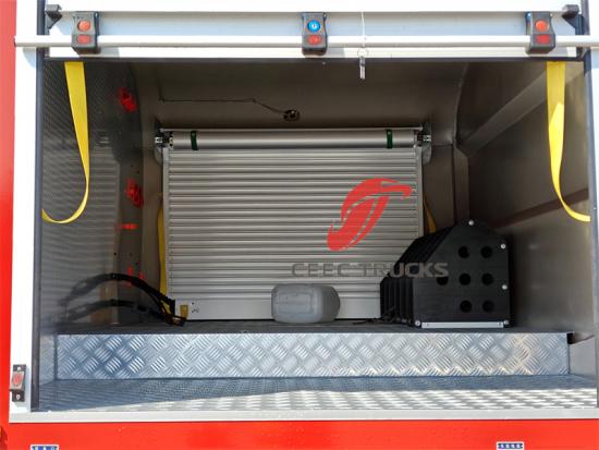 4. Carrosseriestructuur en materiaaltechnologie: De carrosserie van de brandweerwagen is direct gerelateerd aan duurzaamheid en functionaliteit. Het chassis van hoogwaardig speciaal staal en de uitrustingsruimte van aluminiumlegering zorgen niet alleen voor stevigheid, maar ook voor een laag gewicht. Het roestwerende ontwerp (zoals de aluminiumlegering die nooit roest) verlengt de levensduur van de Howo brandweerwagen. Bovendien weerspiegelen gedetailleerde ontwerpen, zoals roldeuren met regengoten en antislippedalen die 300 kg kunnen dragen, allemaal overwegingen voor veiligheid en gebruiksgemak.