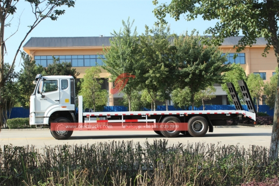 HOWO 400PK platte bak zelfladervrachtwagen (ook wel genoemdHOWO zware platte wagen, HOWO transportwagen, HOWO 6x4 transportwagen, SINOTRUK HOWO platte wagens, HOWO 10 wiel platte wagen transportwagen, HOWO platte wagen, HOWO platte wagen) wordt vaak gebruikt voor het vervoeren van bouwmaterialen, machines, voertuigen en andere grote of omvangrijke voorwerpen. Het open ontwerp van diepladers maakt het laden en lossen van vracht eenvoudig met kranen, vorkheftrucks of andere apparatuur.
