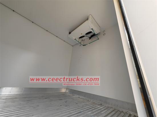 Equipped with CARRIER CITIMAX D6 Refrigeration unitDeHowo 4x2 vrieswagen met draagunitis een efficiënt transportmiddel, ontworpen voor moderne koelketenlogistiek. Het voertuig is uitgerust met een Weichai WP3NQ160E61-motor van 160 pk en een krachtige, energiezuinige en milieuvriendelijke zesversnellingsbak. De koelbox heeft een drielaagse composietstructuur van glasvezelversterkte kunststoffen (FRP), PU-schuim en glasvezelversterkte kunststoffen (FRP). De 105 mm dikke isolatielaag is afgestemd op de Carrier CITIMAX D6-koelunit (koelvermogen van 6000 W), die een temperatuurbereik van -20 °C nauwkeurig kan handhaven.℃naar +40℃