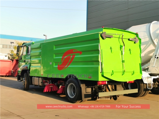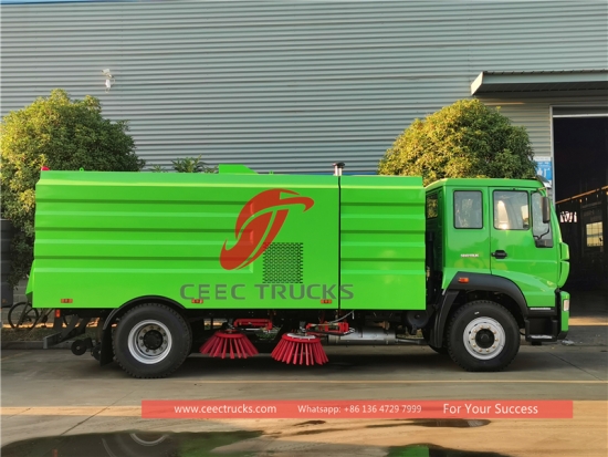 Howo 5 cbm veegwagen (ook wel howo 5 cbm genoemdveegwagen, HOWO 5 cbm hydraulische veegwagen, HOWO straatveegwagen, straatreinigingswagen, Howo 5 cbm wegreinigingsvoertuig) is Ontworpen voor het dagelijks vegen van wegen in de wijk, stad, op snelwegen, bouwplaatsen, op bovengrondse wegen, bruggen, pleinen, luchthavens en dokken met een wegdek van asfaltbeton en cementbeton.