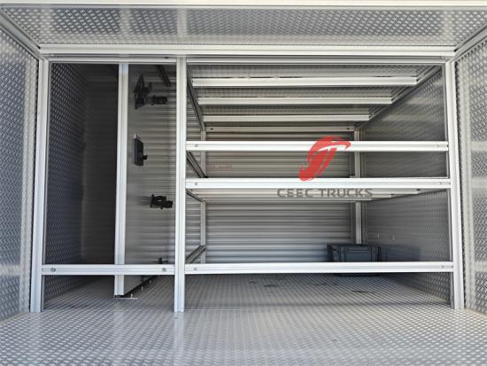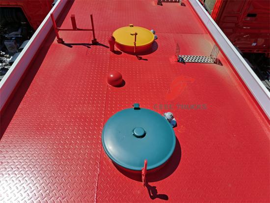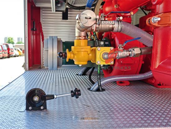 Bedieningspaneel waterpomp in het Engels, spatbord moet zwart zijn, met alarmlicht, afneembare ladder, achterste uitrustingskast van de carrosserie onder de richting van de opwaartse kanteling van ongeveer 45 graden, alle interfaces van het voertuig en accessoires zijn Brits, met een rol van 30 m zwarte hogedrukslang |