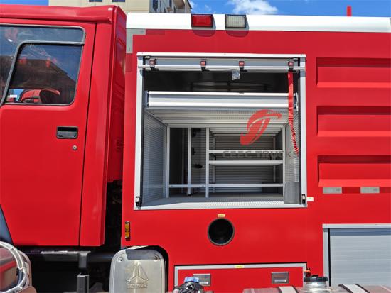 6×4, RHD/LHD can be optionalDe speciale brandweerwagen, gebouwd op het robuuste Howo 6x4 heavy-duty chassis, integreert een uitstekend vermogen van 371 pk, kan alle soorten moeilijke wegen trotseren en legt een goede basis voor noodhulp door brand. De Howo brandweerwagen is uitgerust met een grote watertank van 6000 liter en een PS professionele brandpomp met een sproeibereik tot 65 meter. Er is een introductie tot de bediening, een optioneel bedieningspaneel en diverse optionele configuraties beschikbaar om aan verschillende behoeften te voldoen. Deze Howo brandweerwagen biedt solide bescherming voor brandveiligheid en toont uitstekende prestaties en flexibiliteit. De dubbele rij cabine van de Howo brandweerwagen biedt voldoende ruimte en kwaliteit om brandblusapparatuur te laden en goede rijprestaties te behouden. De cabine biedt plaats aan 5 brandweerlieden en is uitgerust met airconditioning om ervoor te zorgen dat de bestuurder zich onder alle weersomstandigheden comfortabel voelt.
