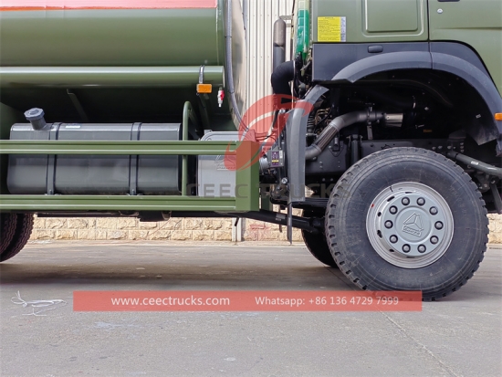 HOWO 6x6 brandstoftransportwagen(Ookgenaamd Siontruk6X6Olietransportwagen, SINOTRUK Zware brandstoftankwagen, 10-wielige dieseltankwagen, SINOTRUK6x6olievulwagen, SINOTRUK NieuwOlieleveringsvrachtwagen, populaire benzinetankwagen, SINOTRUK brandstoflevering Voertuig)iswordt gebruikt voor het transport van olie, diesel, benzine, kerosine, etc.