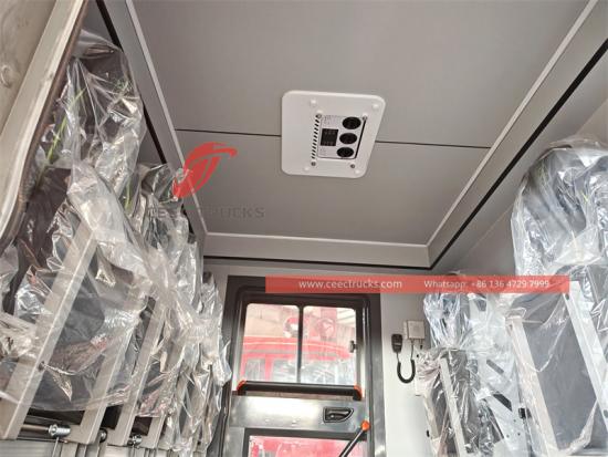 Bedieningspaneel waterpomp in het Engels, spatbord moet zwart zijn, met alarmlicht, afneembare ladder, achterste uitrustingskast van de carrosserie onder de richting van de opwaartse kanteling van ongeveer 45 graden, alle interfaces van het voertuig en accessoires zijn Brits, met een rol van 30 m zwarte hogedrukslang |