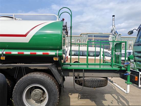 Met een grote watertank en hoogwaardige materialen beschikt de Howo-watersproeiwagen over een tankinhoud van meer dan 20.000 liter. Dit voldoet aan de behoeften van grootschalige watersproeioperaties, vermindert het aantal keren dat de tank moet worden bijgevuld en verbetert de operationele efficiëntie. De watertank is gemaakt van hoogwaardig koolstofstaal (Q235) en heeft een ovale tankbehuizing. Deze heeft de voordelen van hoge sterkte en corrosiebestendigheid, wat de levensduur van de watertank verlengt.