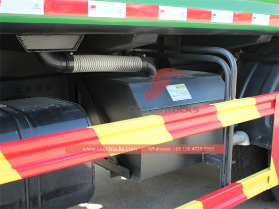 Bestaande uit een hermetische afvaltank, hydraulisch systeem en besturingssysteem. De gehele vrachtwagen is hermetisch afgesloten en kan het afval automatisch comprimeren en storten. Het afvalwater dat tijdens het comprimeren ontstaat, stroomt volledig in de afvaltank. |