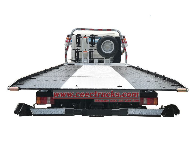 ● Hefinrichting: Uitgerust met een voorbeugel en een achterbeugel, worden de banden van het defecte voertuig vastgezet met veerpennen, pennen en bevestigingsritsen om de stabiliteit van het voertuig tijdens het transport te garanderen.