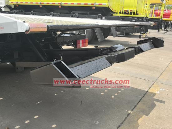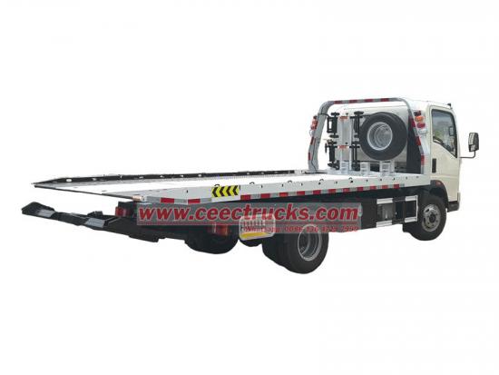 Het voertuig is uitgerust met een hydraulisch hefsysteem, een tractielier en een laadbakmechanisme, waarmee verschillende modellen, zoals auto's, SUV's en vrachtwagens, veilig kunnen worden gesleept. Howo lichte sleepwagen met platte laadvloer beschikt ook over extra verlichting, waarschuwingslichten, etc. om een veilige werking 's nachts of bij slecht weer te garanderen.