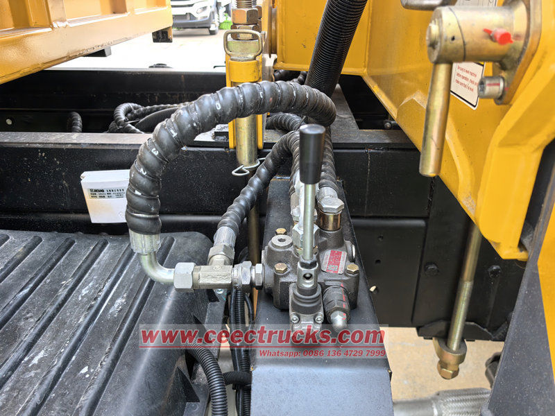 Het bovenste deel van de HOWO enkelassige 4-tons autolaadkraan is slim ontworpen en integreert twee functionele modules, de laadbak en de kraan, waardoor het gemak van "één voertuig voor meerdere doeleinden" wordt gerealiseerd. De laadbak heeft een afmeting van 3800 × 2400 × 450 (mm) en is gemaakt van hoogwaardig koolstofstaal. Het ontwerp met drie zijden en vier bodems zorgt niet alleen voor de duurzaamheid van de laadbak, maar verbetert ook effectief de laadcapaciteit. Of het nu gaat om bouwmaterialen, apparatuuraccessoires of andere bulkgoederen, het is gemakkelijk te laden.