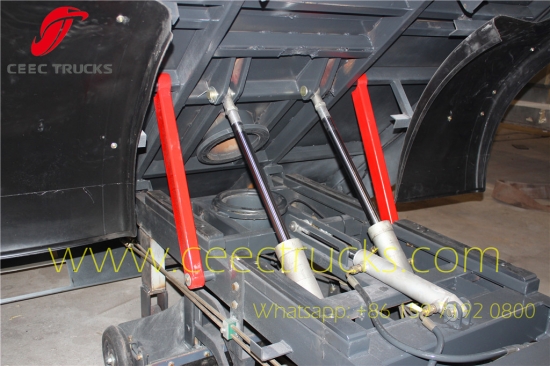 (De twee hydraulische cilinders kunnen de ISUZU ELF-model veegwagen optillen)
