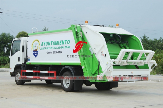 ISUZU 10CBM Achterlaad vuilniswagen (ook wel genoemd ISUZU afvalpers, achterlader, ISUZU afvalverwerkingswagen, achterlader vuilniswagen, afvalperswagen, afvalpers fabrikant) is Ontworpen voor het dagelijks transport van afval in woonwijken zoals alle soorten steden, grote stations, havens en kades, luchthavens en dichtbevolkte gebieden zoals industriële en mijnbouwbedrijven en militaire eenheden.