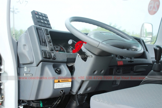 ISUZU afvalverdichtingswagen met hoge verdichtingsgraad. Het chassis is voorzien van een ISUZU 190 pk dieselmotor en een ISUZU MLD 6-versnellingsbak. PLC-bedieningskast voor eenvoudige bediening. Alle lak en logo's worden naar wens van de klant geleverd.
