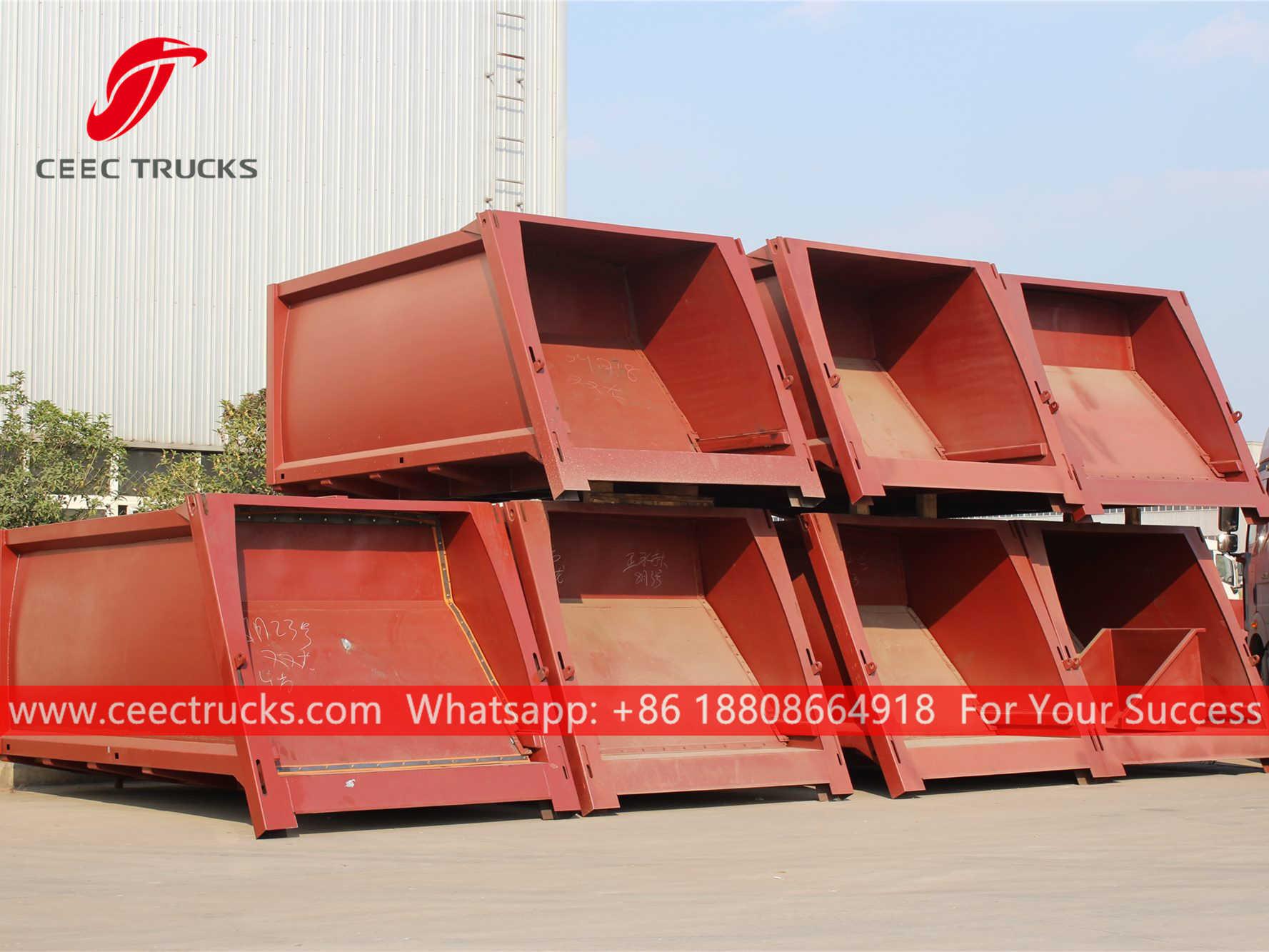 ** Achteruitrijalarm en camera kunnen worden gemonteerd. ** Er kan gekozen worden voor meerdere kleppen in Italië. ** U kunt kiezen uit 240L (enkele bak of dubbele bak) of standaard 660 L, 1100 L bakken met baklift. |