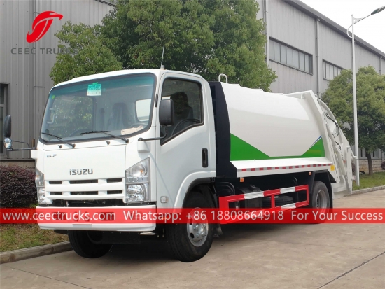 ISUZU Achterlaadvuilniswagen (ook wel genoemd vuilniswagen, ISUZU achterlader, gloednieuw afvalpersvoertuig, vuilniswagen met achterlader, vuilnisophaaldienst,gecomprimeerd vuilniswagenfabrikant) is Ontworpen voor het dagelijks transport van afval in woonwijken zoals alle soorten steden, grote stations, havens en kades, luchthavens en dichtbevolkte gebieden zoals industriële en mijnbouwbedrijven en militaire eenheden.