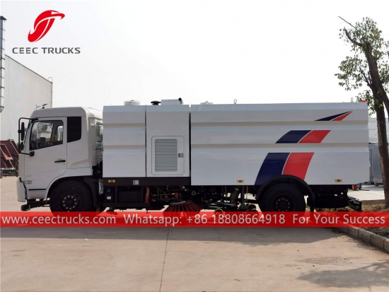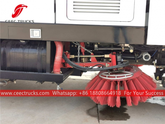 Dubai 15cbm straatveeg- en waswagen, ISUZU 4x2 chassis, MLD 6-versnellingsbak, 205 pk dieselmotor, roestvrijstalen stofbak en schoonwatertank, 2-borstelsysteem met wassysteem, elektrische cabinebediening voor comfortabele bediening. Alle lakwerk en logo's zijn naar wens aan te passen.