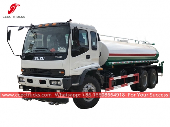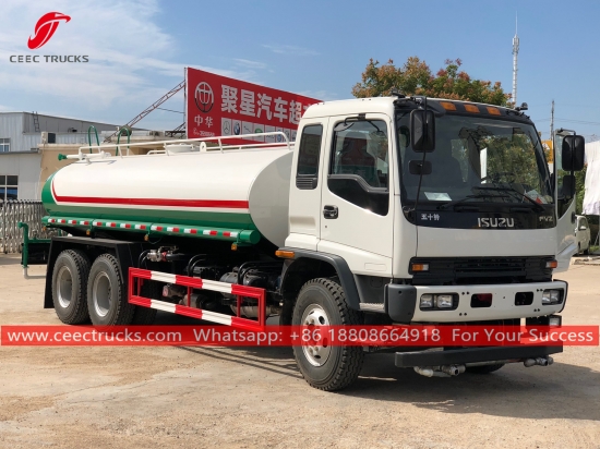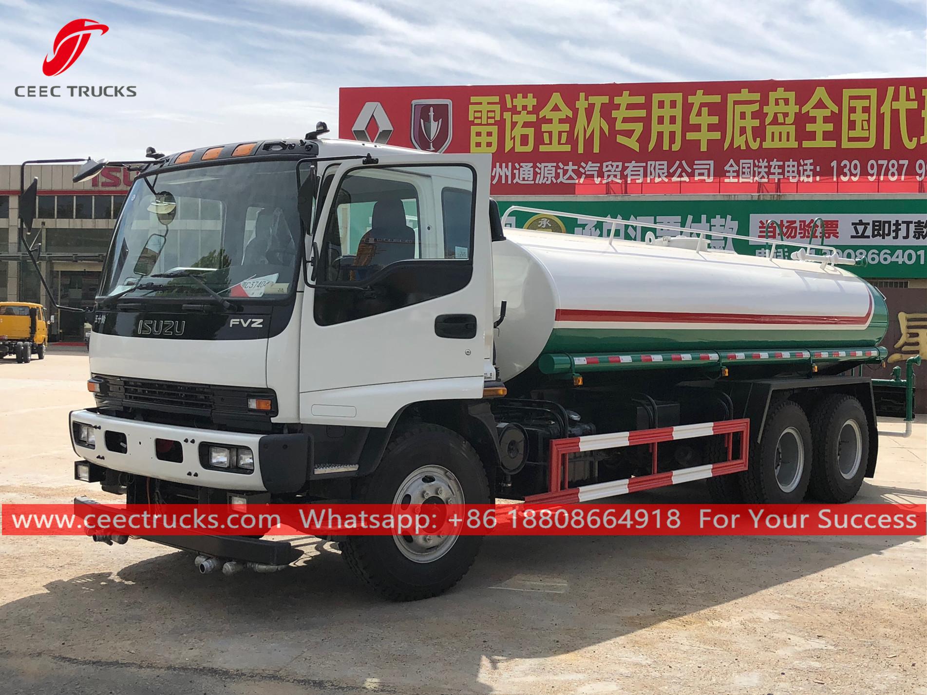 ISUZU 15.000L watertruck, ISUZU FVZ chassis met stuur links, snelle handgeschakelde versnellingsbak met 8 versnellingen, ISUZU 260 pk dieselmotor, waterpomp van een bekend merk, met optionele sproeiers voor, midden en achter. Alle lakwerk en logo's zijn afhankelijk van de wensen.