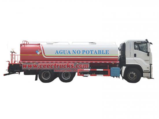 De Isuzu 20 cbm drinkwatertanker is aangepast naar een Isuzu GIGA 6x4 chassis, een Isuzu 6UZ1-TCG61 380 pk motor, een zescilinder lijnmotor, een maximaal vermogen van 279 kW, een snelle versnellingsbak met 12 versnellingen, 12 versnellingen vooruit en 2 achteruit. Het bovenste deel bestaat uit een roestvrijstalen watertank van 20 cbm. Deze is uitgerust met een frontsproeier, een achtersproeier en een zijsproeier. Aan de achterkant van de tank bevindt zich een werkplatform met een sproeier voor groenvoorziening. Het kanon is draaibaar en de waterhoeveelheid kan worden aangepast (in zuilvorm, nevel of motregen).