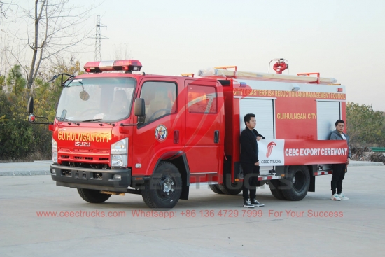 ISUZU ELF Waterbrandweerwagen(Ookgenaamd ISUZU brandweervoertuig, ISUZU NPR waterbrandweerwagen, ISUZU 4×2 brandweerwagen, ISUZU brandweerwagen, ISUZU fabrikant van brandweerwagens)isSolliciteer voor de brandweer van grote en middelgrote steden, petrochemische bedrijven, luchthavens, havens, enzovoort, om onze grote brandhaarden van olie en andere stoffen te blussen.