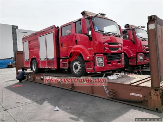 Nieuw ontworpen en aangepaste ISUZU GIGA 4X brandweerwagen met brandbluspompService voor brandblusserwerkzaamheden. Gebaseerd op een nieuw ISUZU GIGA 4X vrachtwagenchassis, gemonteerd met een 4HK1-TCG60 dieselmotor van 205 pk en 5193 ml emissie, conform EURO 6-emissienorm. Aangepaste 5000 liter koolstofstalen watertankwagen en 500 liter roestvrijstalen schuimtankwagen, gemonteerde CB10/40 brandpomp en PL32 brandmonitor, eveneens uitgerust met blauwe LED-rotatielamp, complete sets brandreddingsuitrusting, alles bij elkaar maakte de brandweerwagen populair bij internationale brandweerlieden.