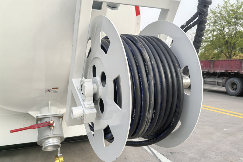 De tankopbouw van het voertuig is gemaakt van hoogwaardig koolstofstaal Q355. De cilinder en de kop zijn gelast met rechte lasnaden van 6 mm dikke koolstofstaalplaat.De constructie is solide. De tank is gemaakt van corrosiebestendig materiaal en is uitgerust met een vloeistofniveau-alarm en een snelontladingsvoorziening.