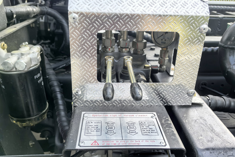 Het voertuig is uitgerust met een hogedrukwaterpomp en een krachtig vacuümzuigsysteem. Eerst spoelt het met een hogedrukspuit het hardnekkige vuil van de binnenwand van de buis weg en vervolgens zuigt een krachtige vacuümpomp het rioolwater en slib in een afgesloten tank voor een efficiënte reiniging.