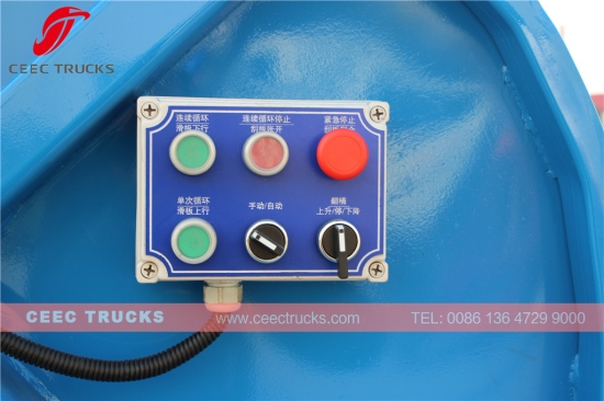 ** Achteruitrijalarm en camera kunnen worden gemonteerd. ** Er kan gekozen worden voor meerdere kleppen in Italië. ** U kunt kiezen uit 240L (enkele bak of dubbele bak) of standaard 660 L, 1100 L bakken met baklift. |