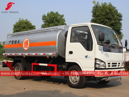 5cbm olietankwagen, ISUZU 4x2 chassis, handgeschakelde 5-versnellingsbak, ISUZU 130 pk dieselmotor, standaard brandstoftanker, oliepomp van een bekend merk als standaard. Alle lak en logo's zijn naar wens aan te passen.